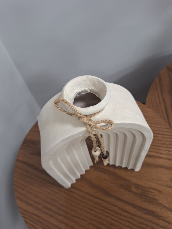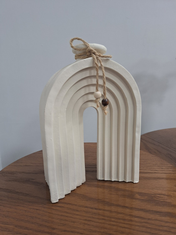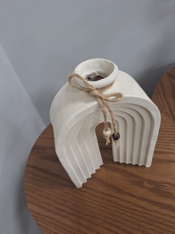 گلدان مدل رنگین کمان از جنس پلی استر با رنگ کرم می باشد.