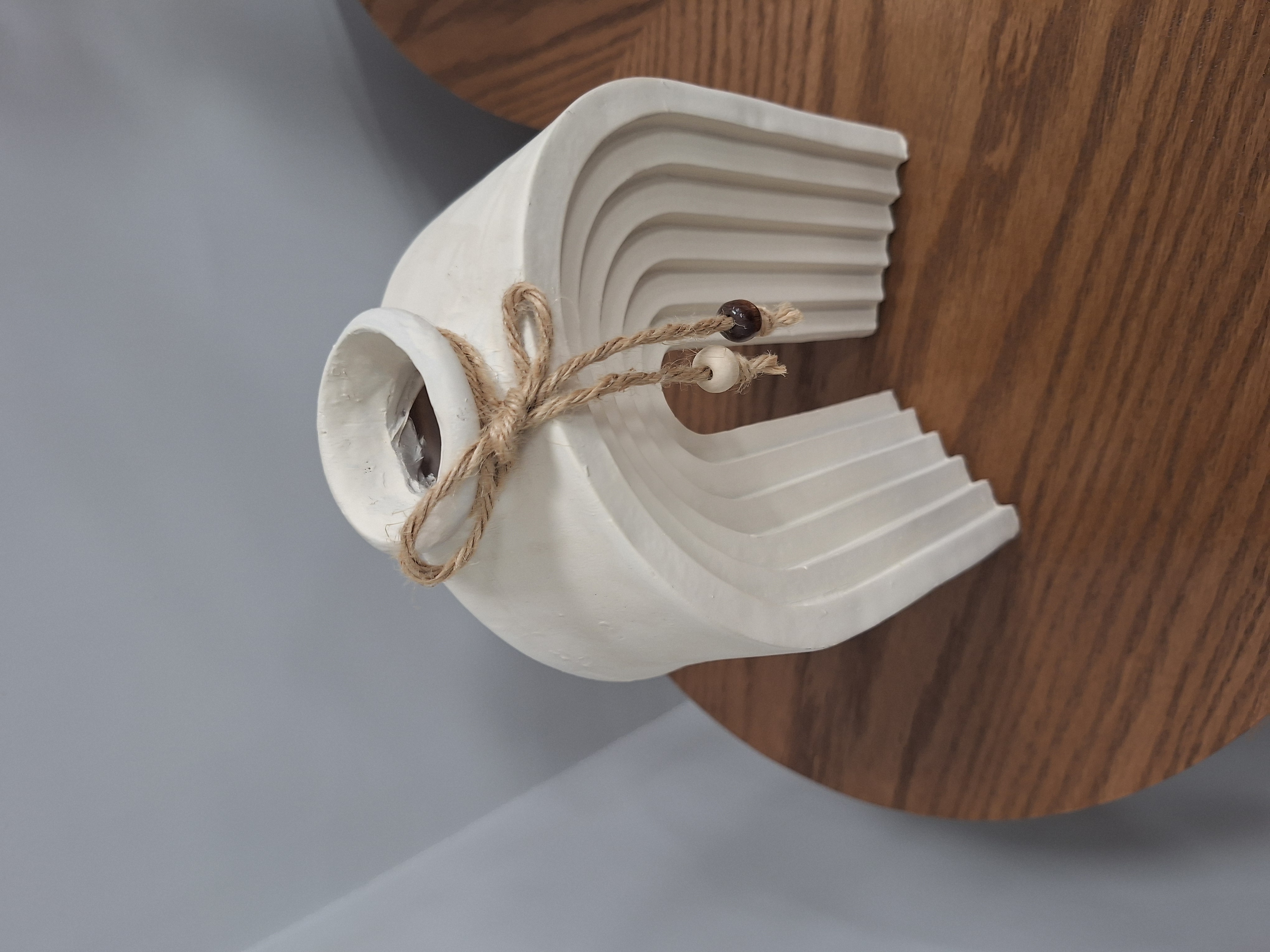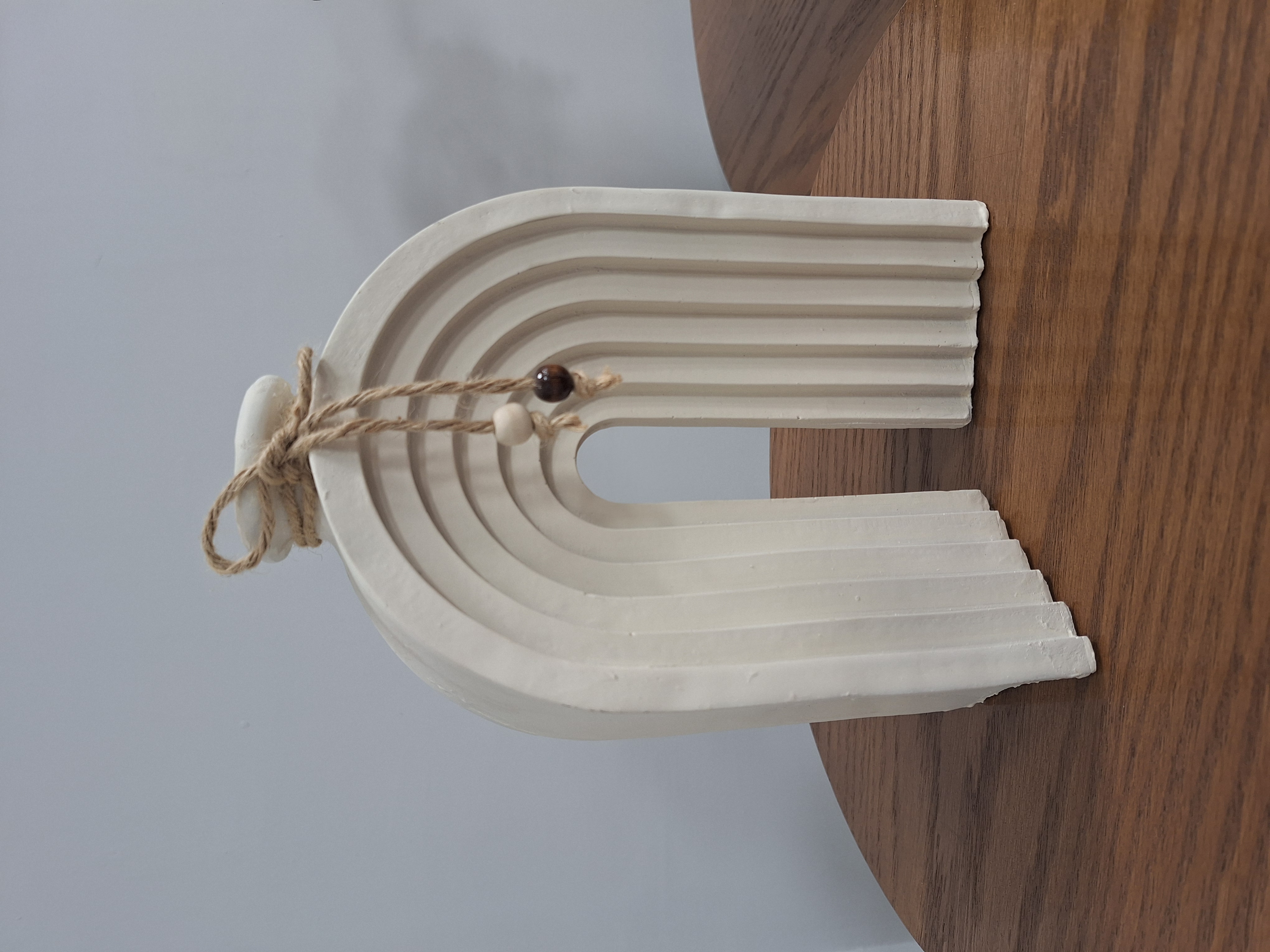 گلدان مدل رنگین کمان از جنس پلی استر با رنگ کرم می باشد.
