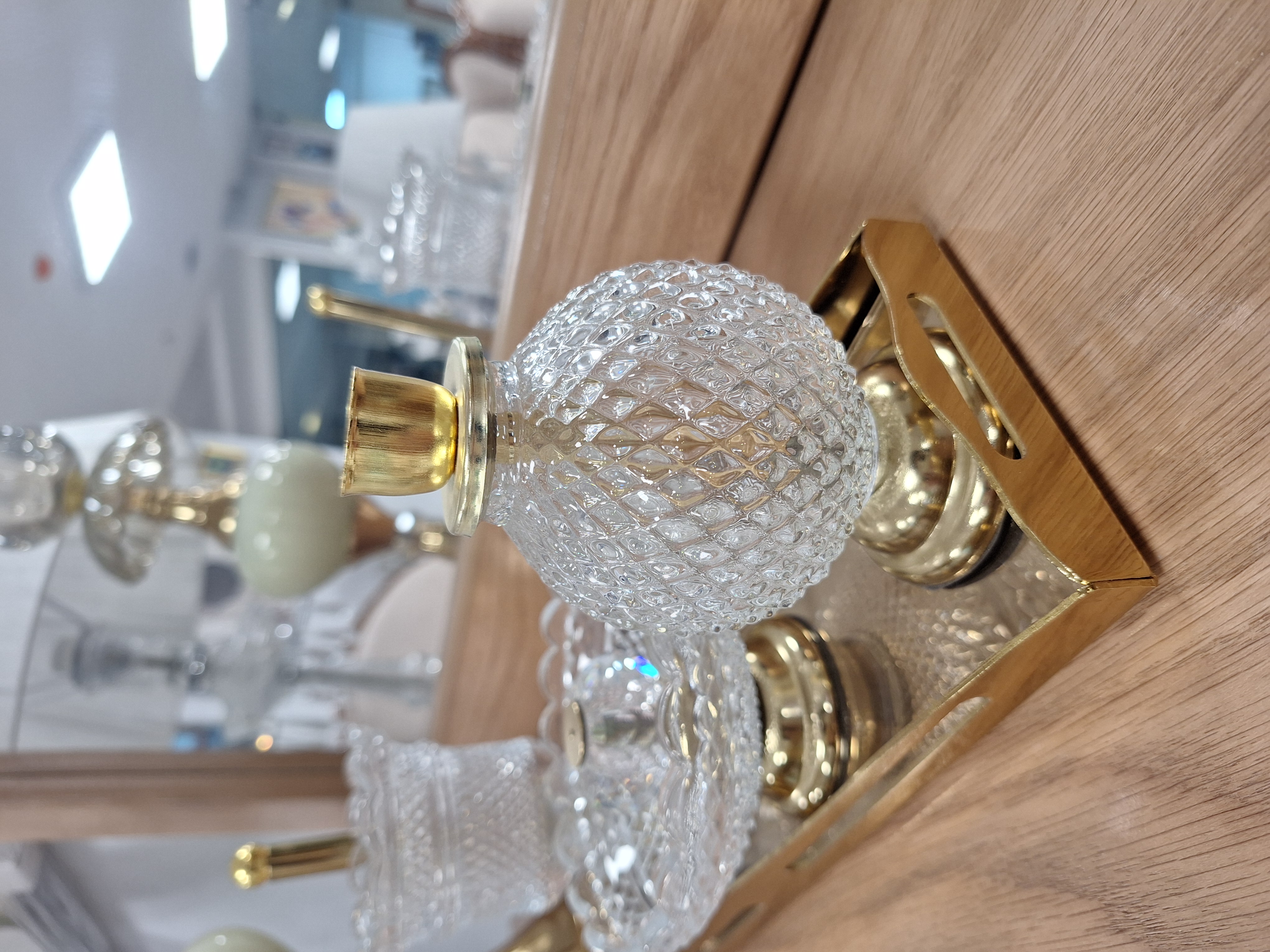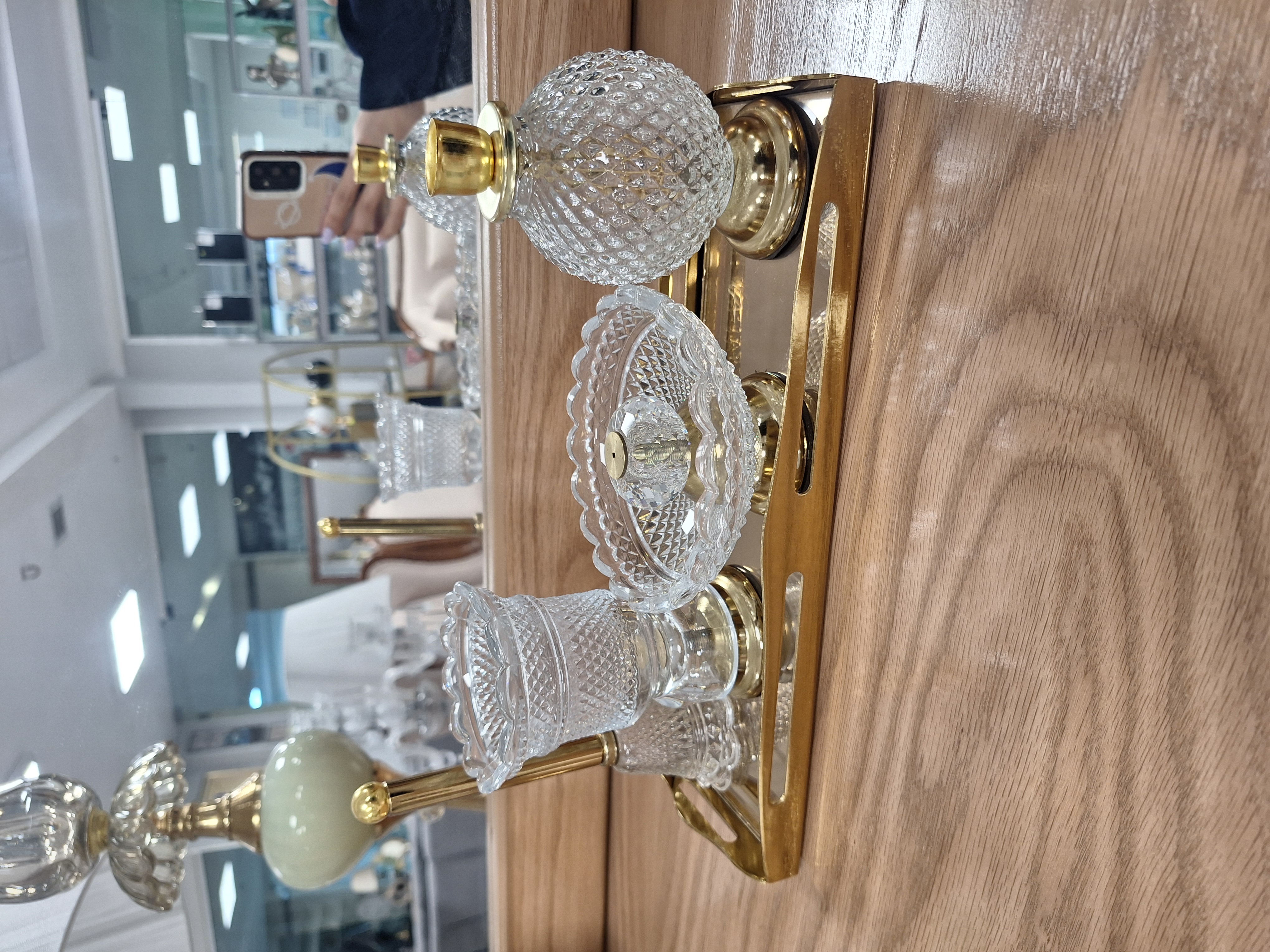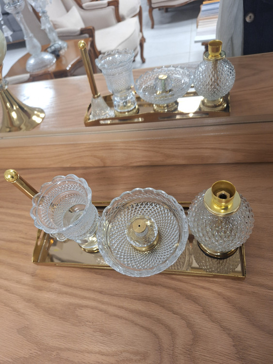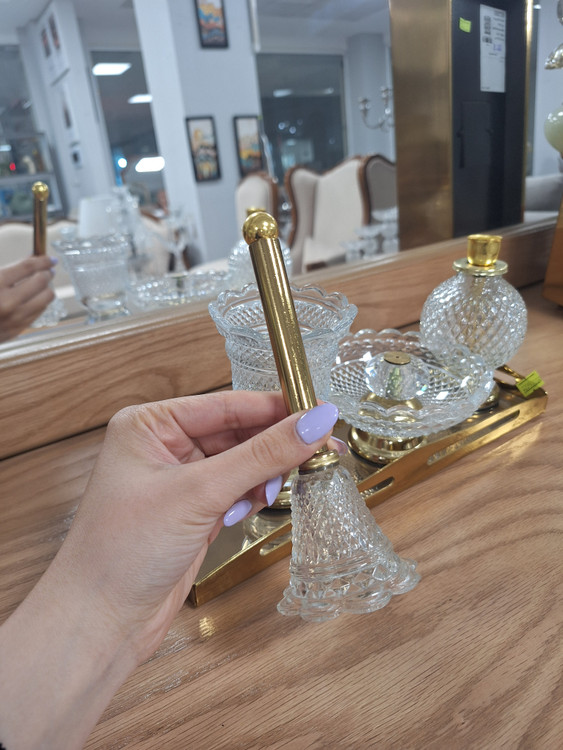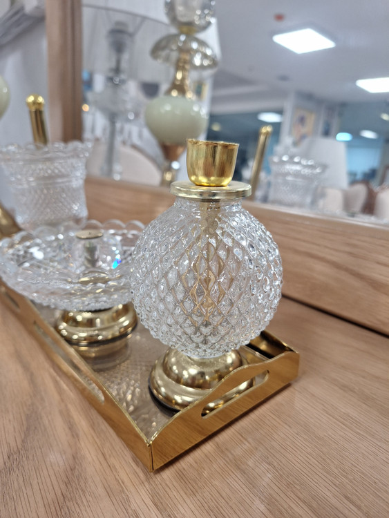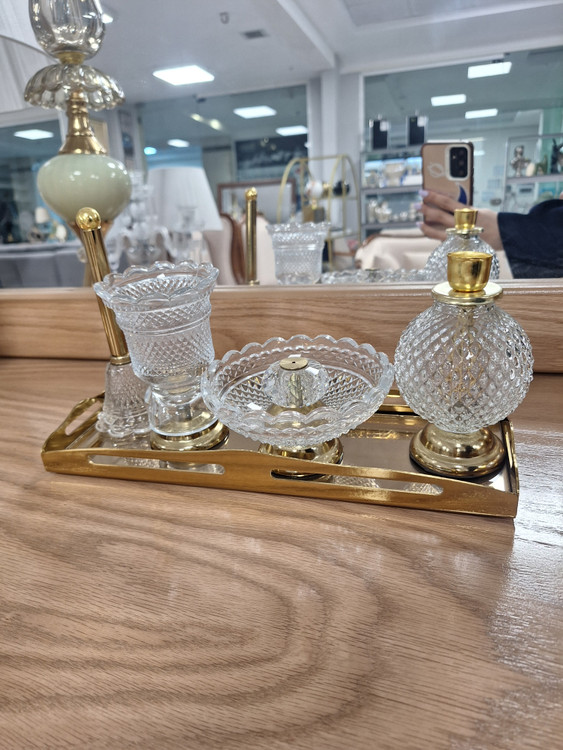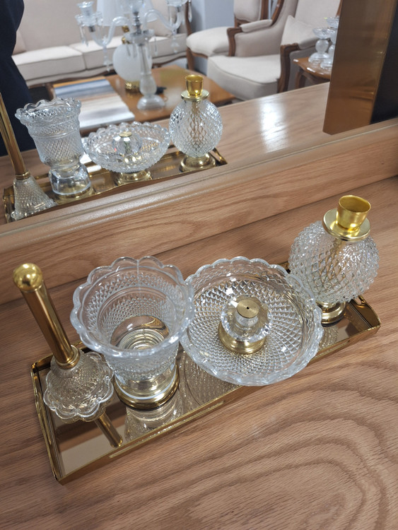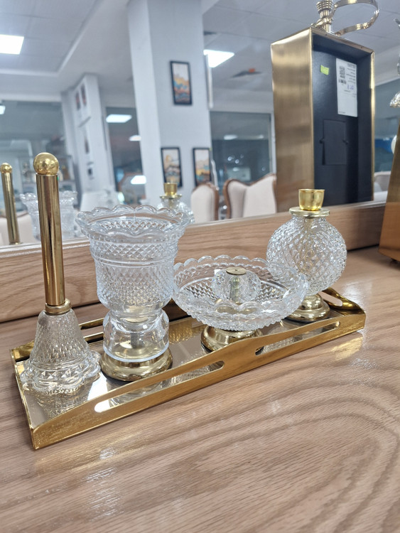 ست اسنوفر مدل باکارات شامل یک سینی آینه ای، اسنوفر، جای کبریت عود و شمع می باشد