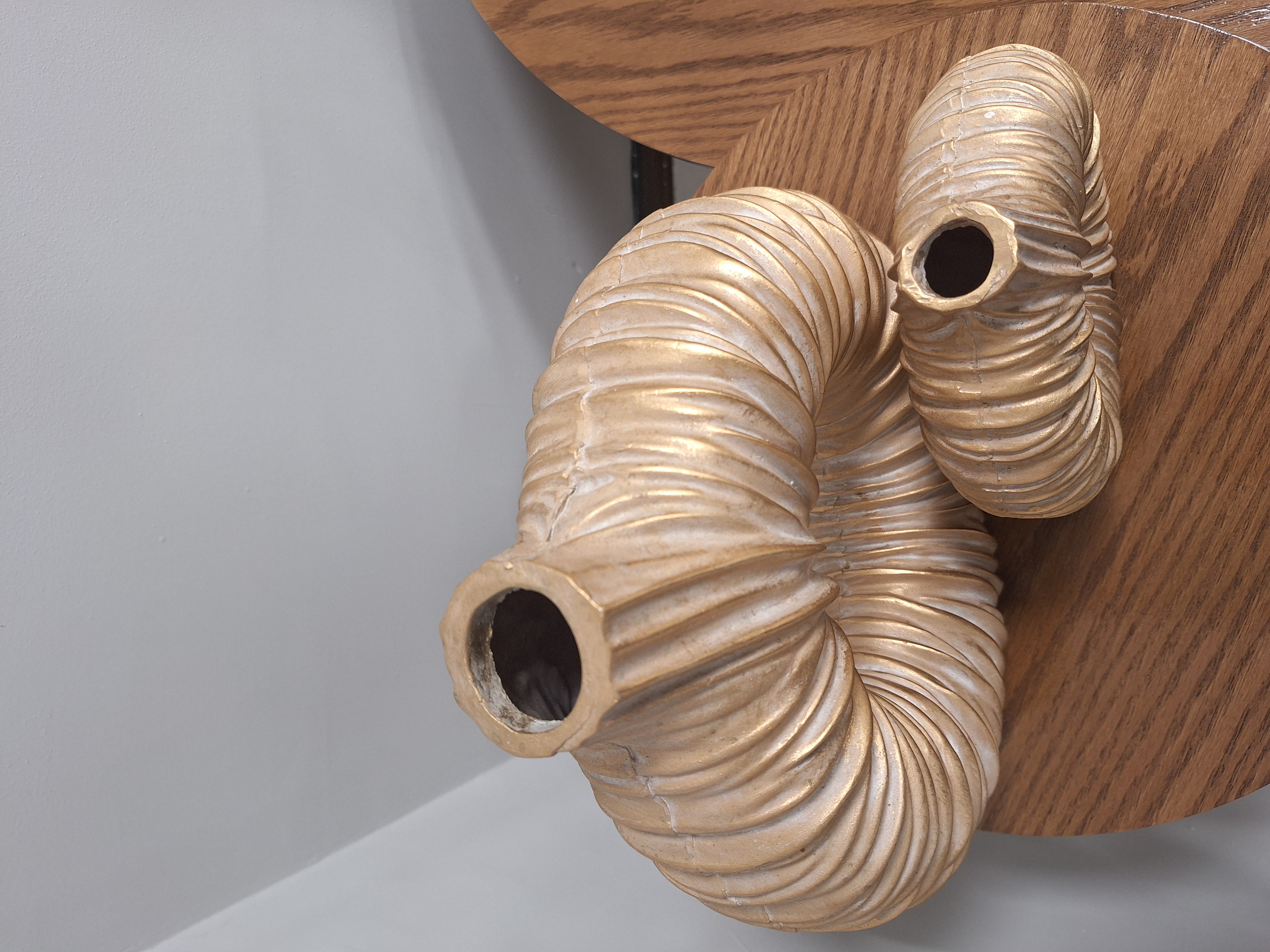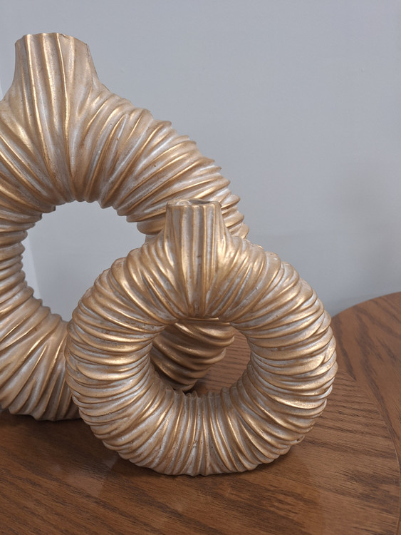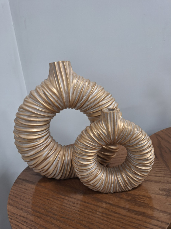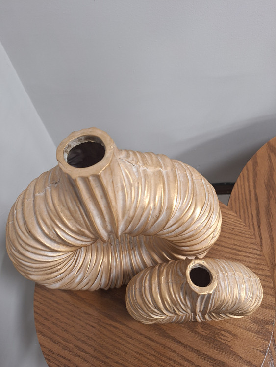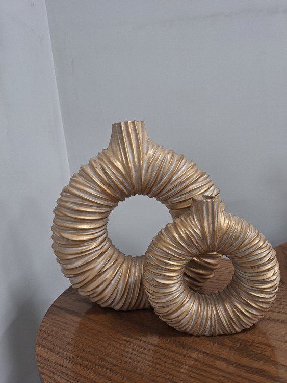 گلدان دوناتی به رنگ کرم_طلایی شیار دار در مجموعه دوتایی می باشد.