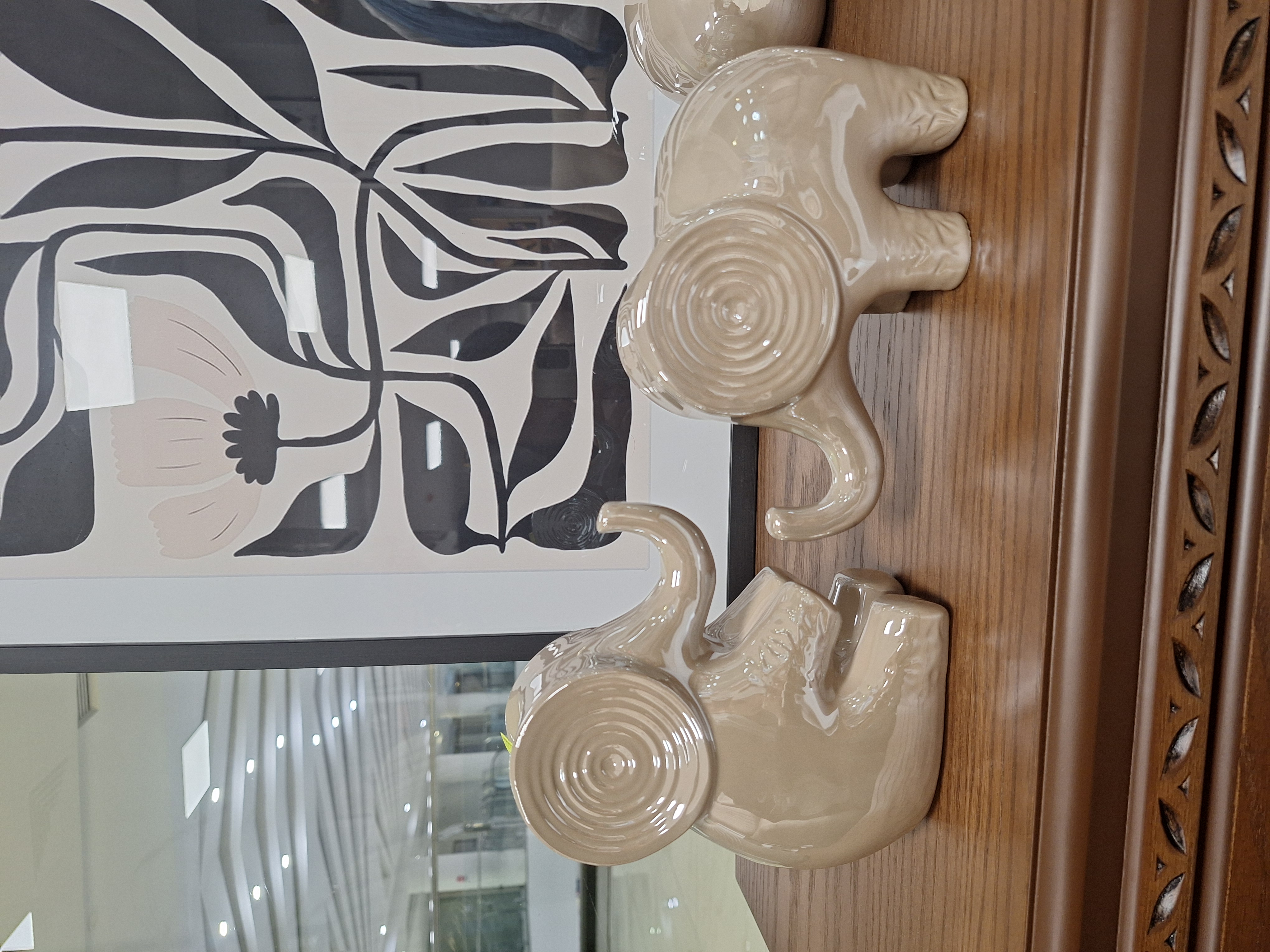 مجسمه فیل هندی در دوسایز با یک فیل ایستاده و نشسته با جنس سرامیک ارائه می شود.